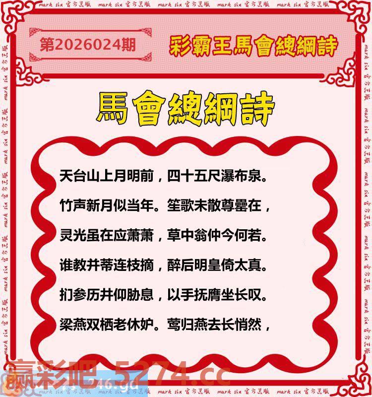024期:彩霸王馬会总纲诗