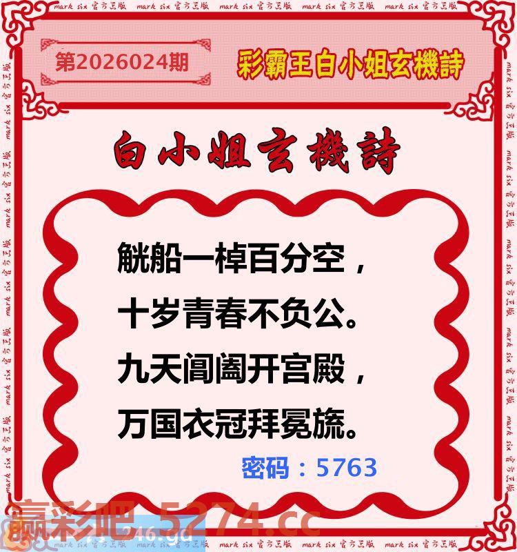 024期:彩霸王白小姐玄机诗