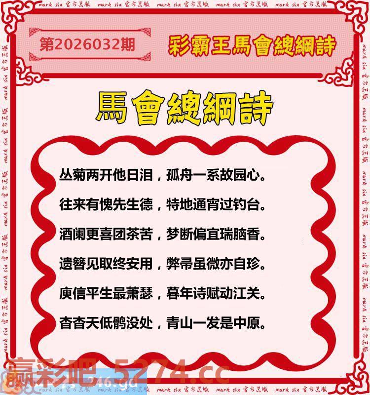 032期:彩霸王馬会总纲诗