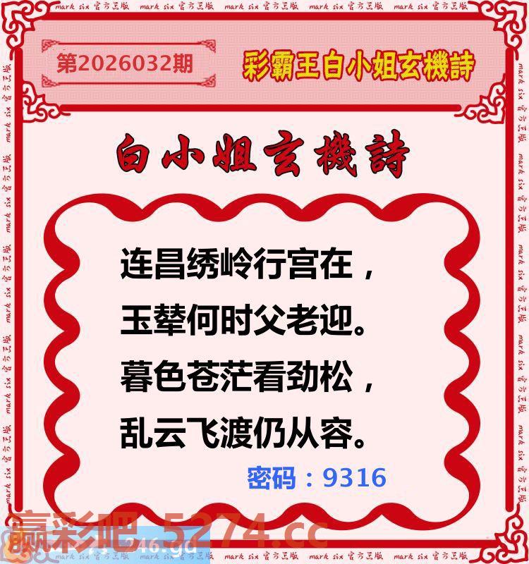 032期:彩霸王白小姐玄机诗