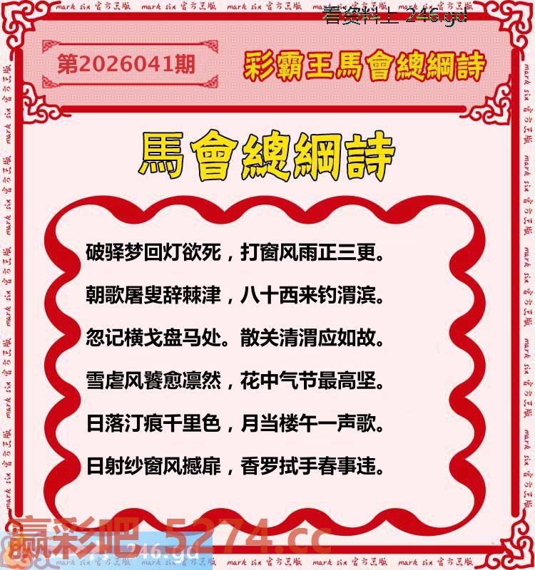 041期:彩霸王馬会总纲诗
