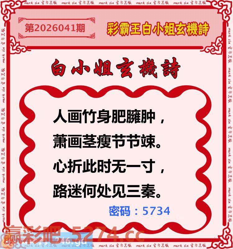 041期:彩霸王白小姐玄机诗